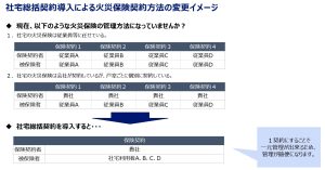そのような背景もあり、異動の多いこの時期には、賃貸入居者向けの火災保険の「社宅総括契約」についてのお問合せが増加します。